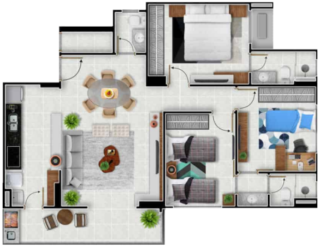 Planta de 3 quartos | 90m²